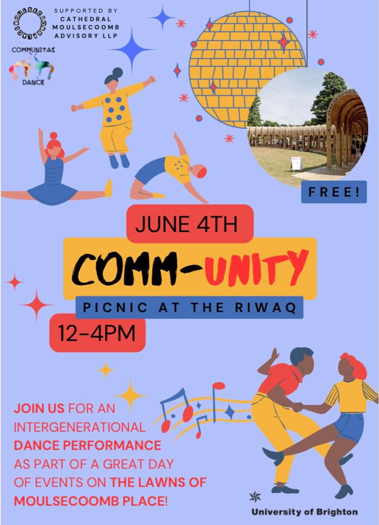 Moulsecoomb Place Lewes Road, BrightonPicnic at Riwaq on the Lawns of Moulsecoomb Place. Please let Marta know if you are available. Wear rainbow dresses, red headpieces and gold, silver or nude shoes (bring 2 choices for different surfaces) Dancing to - Chica Boom, Tortura, Mordidita, and Let's Get Loud.